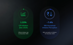 According to the RBI’s September 2025 household survey, consumers perceived current inflation at around 7.4%. That was not a rounding error. That was a five-times difference between government data and what people’s wallets felt.